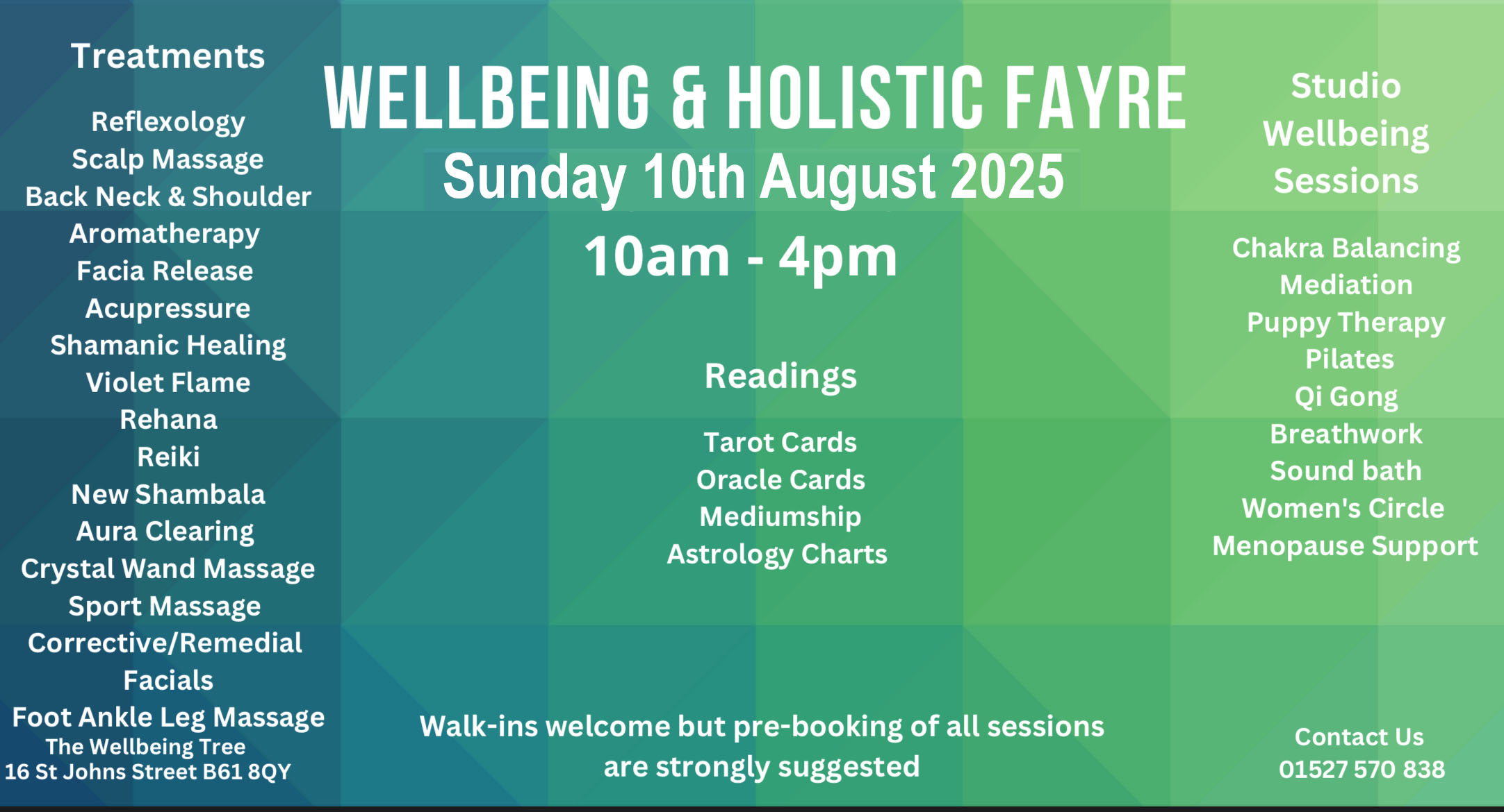 Wellbeing & Holistic Fayre – 10th August 2025Come try the power of healing through Angelic Reiki, New Shamballa, or Violet Flame Rescue Healing. You will be met with empathy, love, and empowerment, guided by the Angelic Kingdom and Ascended Masters. 30-Minute Taster Sessions – Only £20 Each Discounted sessions available in: